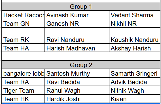 Total: 15 teams